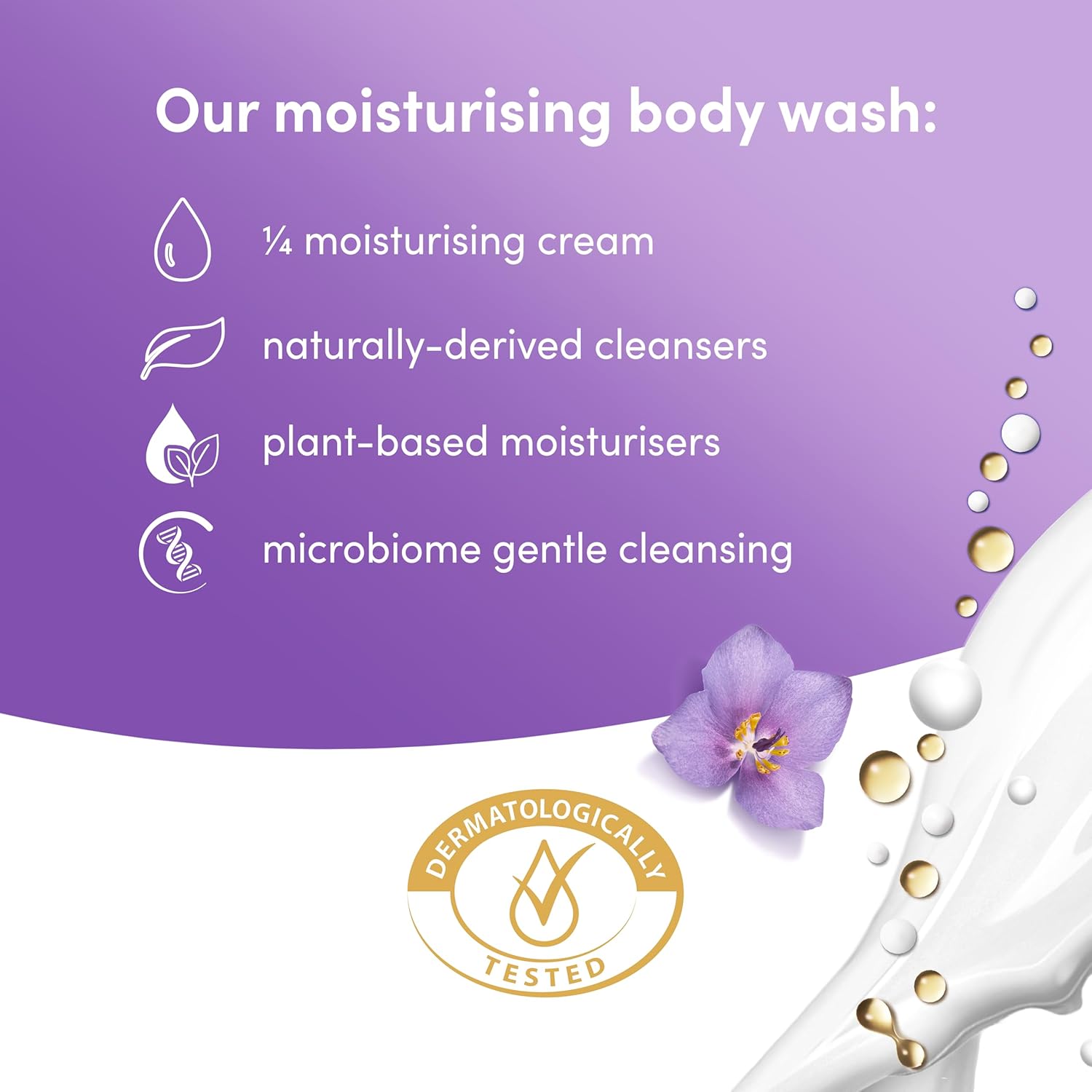 • Soothing Lavender Care: Calming lavender helps relax skin and senses during bathing.