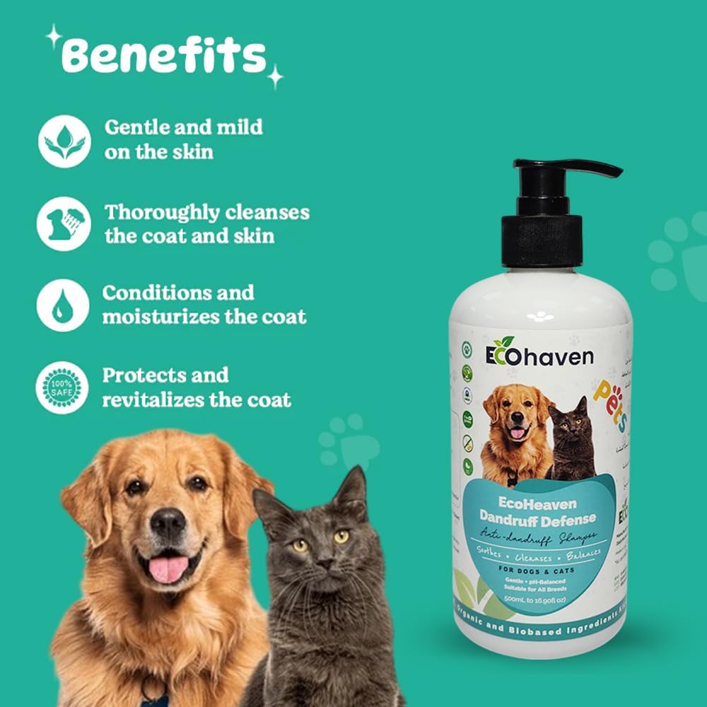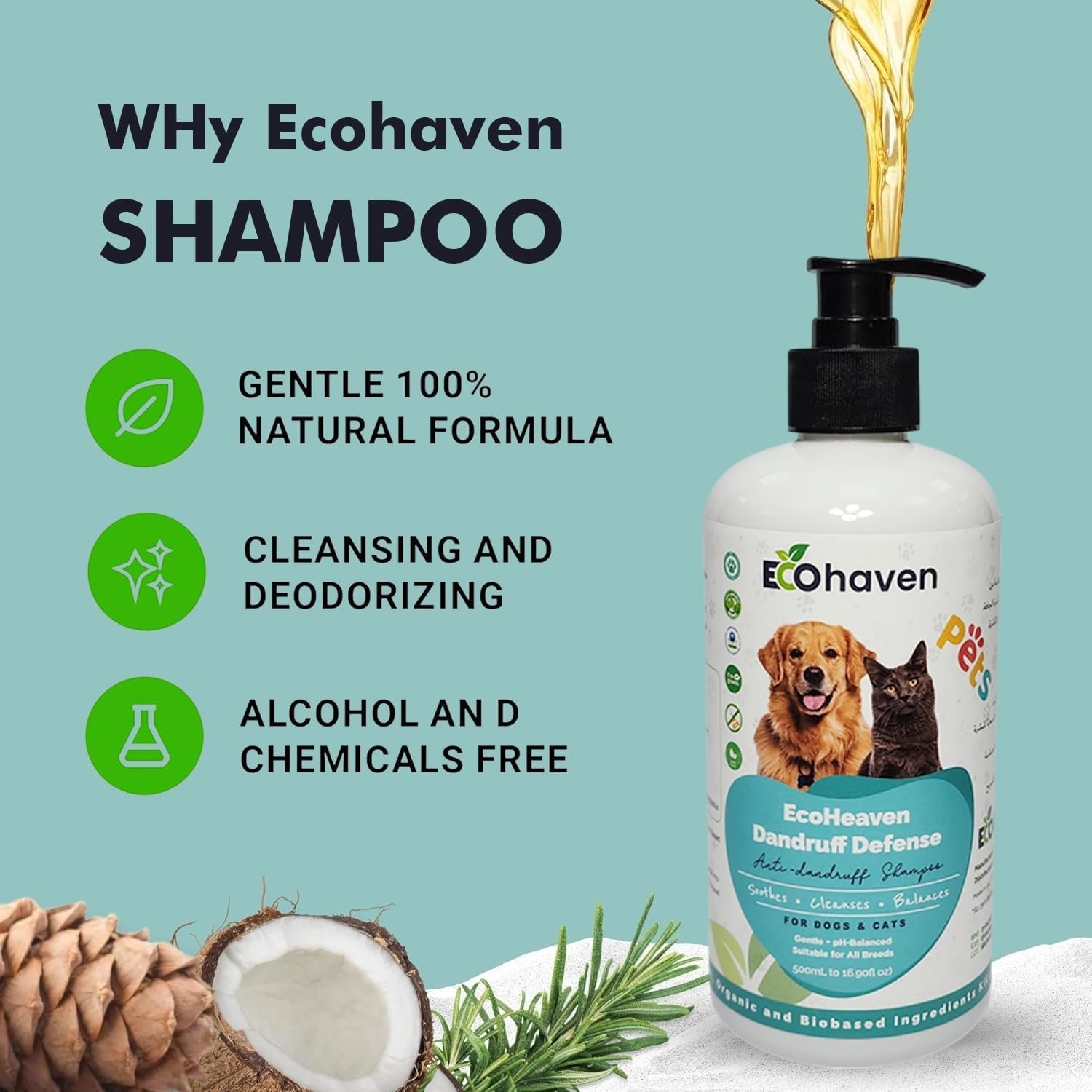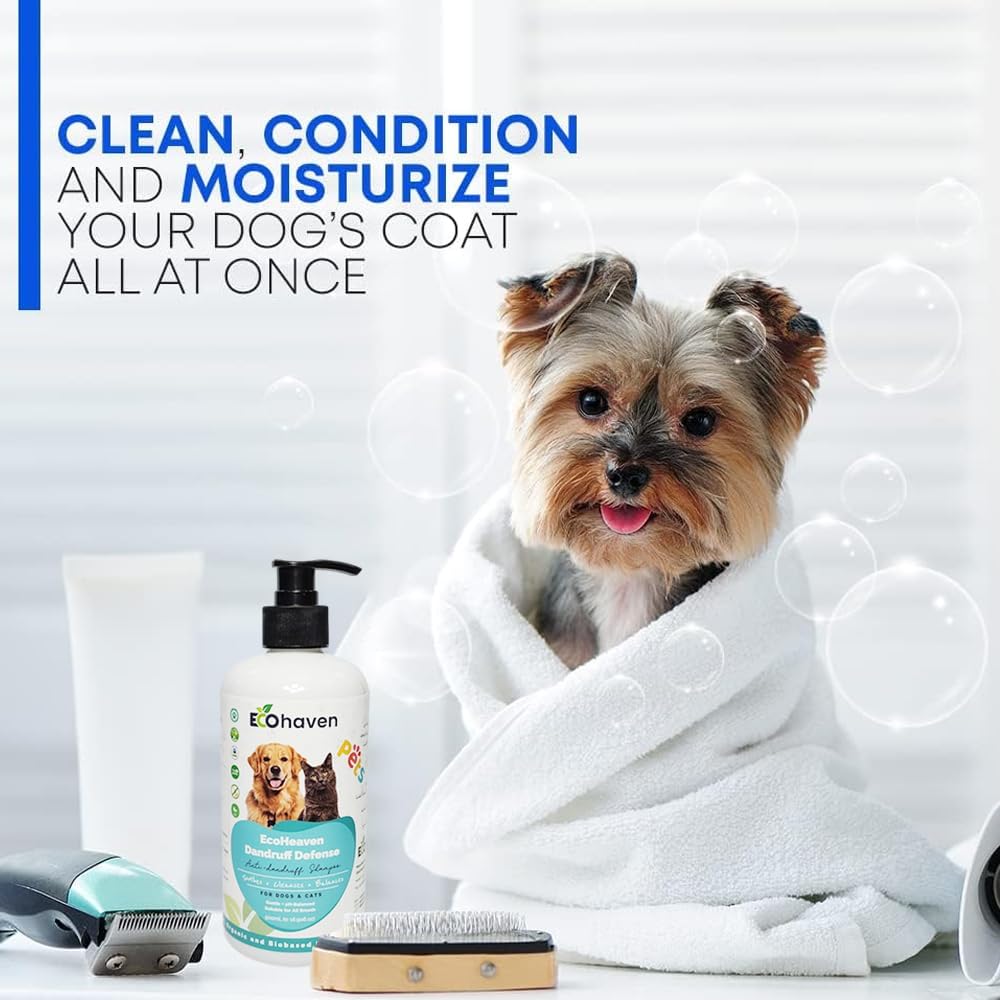 Relieve your pets’ dry, itchy skin with Eco-Haven’s Organic Dandruff Defense Shampoo, a natural anti-dandruff pet shampoo powered by tea tree oil, aloe vera, and oatmeal. This plant-based, non-toxic formula gently cleanses while soothing irritation, reducing flakes, and restoring your pet’s skin balance. Perfect for dogs and cats with dandruff or sensitive skin, it leaves fur soft, shiny, and fresh without harsh chemicals. Keep your pets comfortable and their coats healthy with this eco-friendly, hypoallergenic dandruff solution.